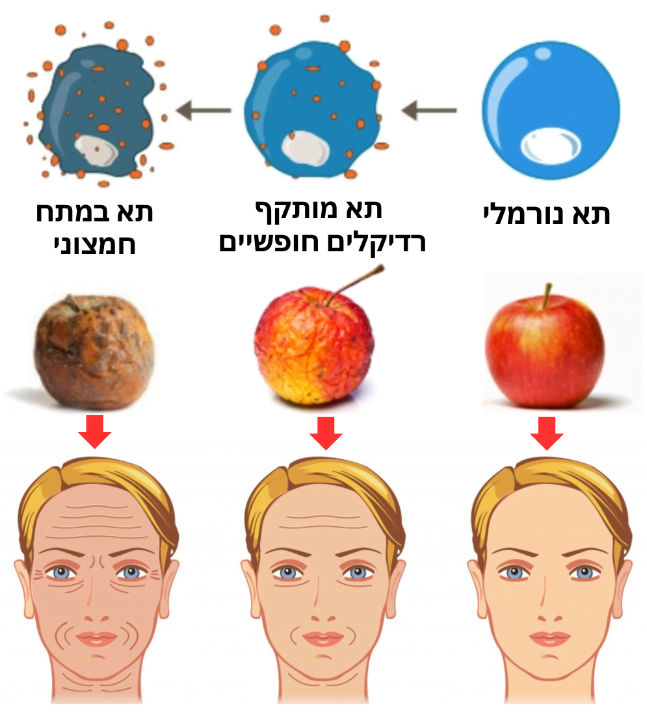 הסיבה העיקרית להזדקנות שלך היא חיצונית ולכן זה הכי הגיוני שכדי להלחם בנזק חיצוני, עליך לחזק את הגוף הפנימי ולהשיב את התא למצב בריא. קרמים יקרים והזרקות הם לא פתרון אמיתי לאנטי- אייג׳ינג, הם רק מסכה שמחמירה את המצב ומביאה להתמכרות תמידית לפתרונות בזק.
