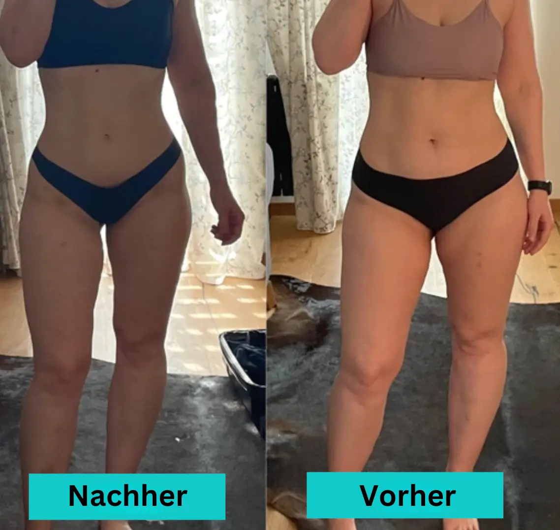 Sowohl mein Mann als auch meine Schwester haben sich die Bilder angesehen und waren sich einig, dass mein Bauchfett deutlich zurückgegangen ist. Und als wäre das nicht genug, zeigen die Messungen, dass mein Bauchumfang um 2,7 cm geschrumpft ist. Kein Wunder, dass ich mich in engen Hosen viel wohler fühle – bei so großartigen Ergebnissen!